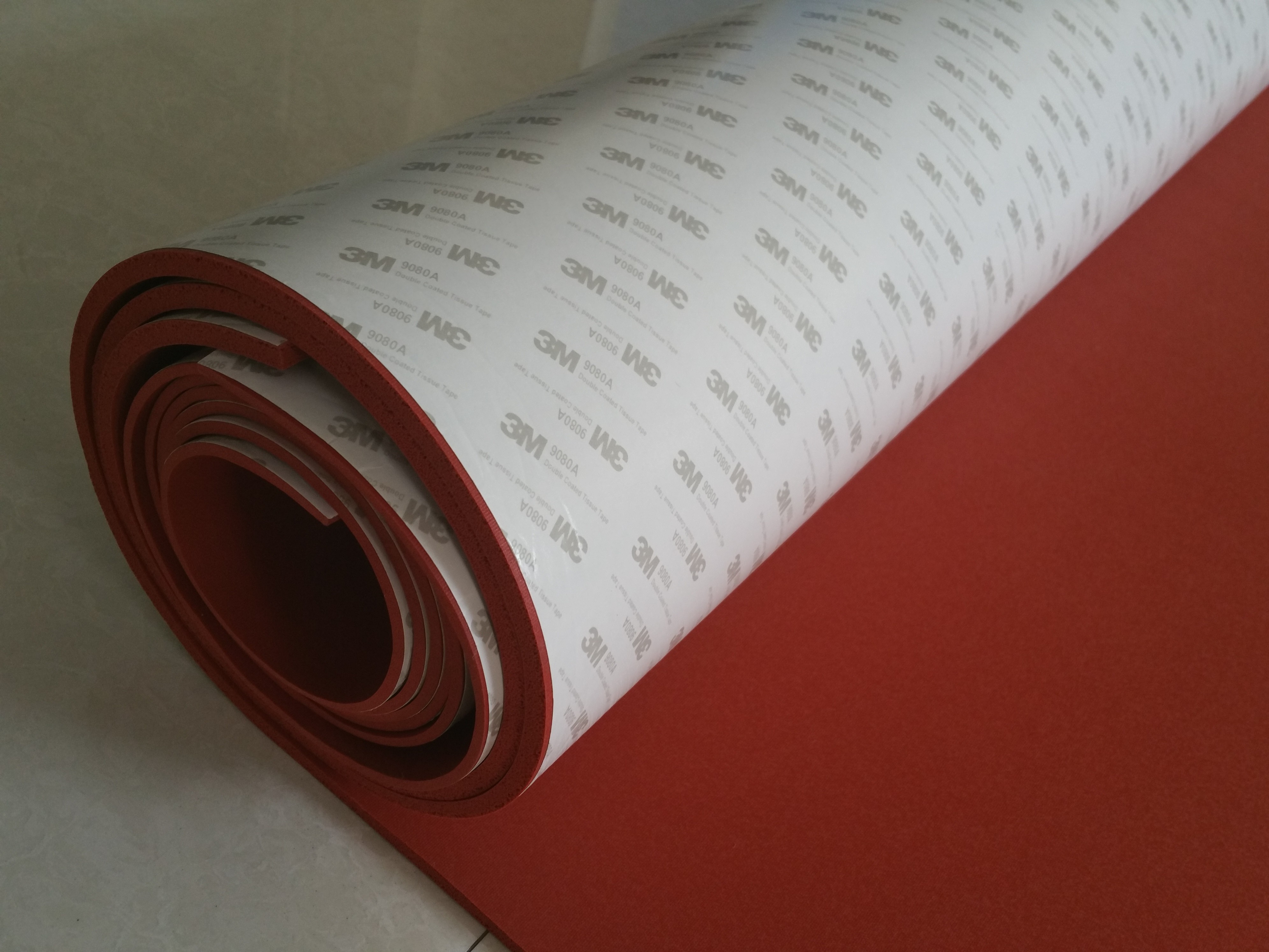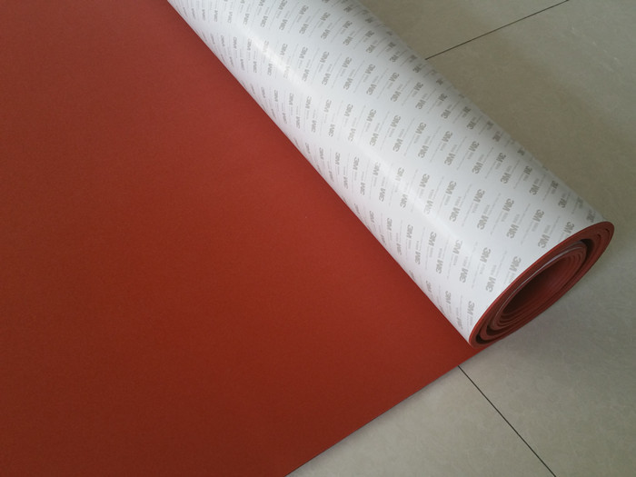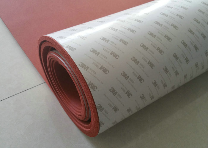 Lámina de esponja de silicona resistente a altas temperaturas de color rojo oscuro y de celda cerrada con adhesivo 3M