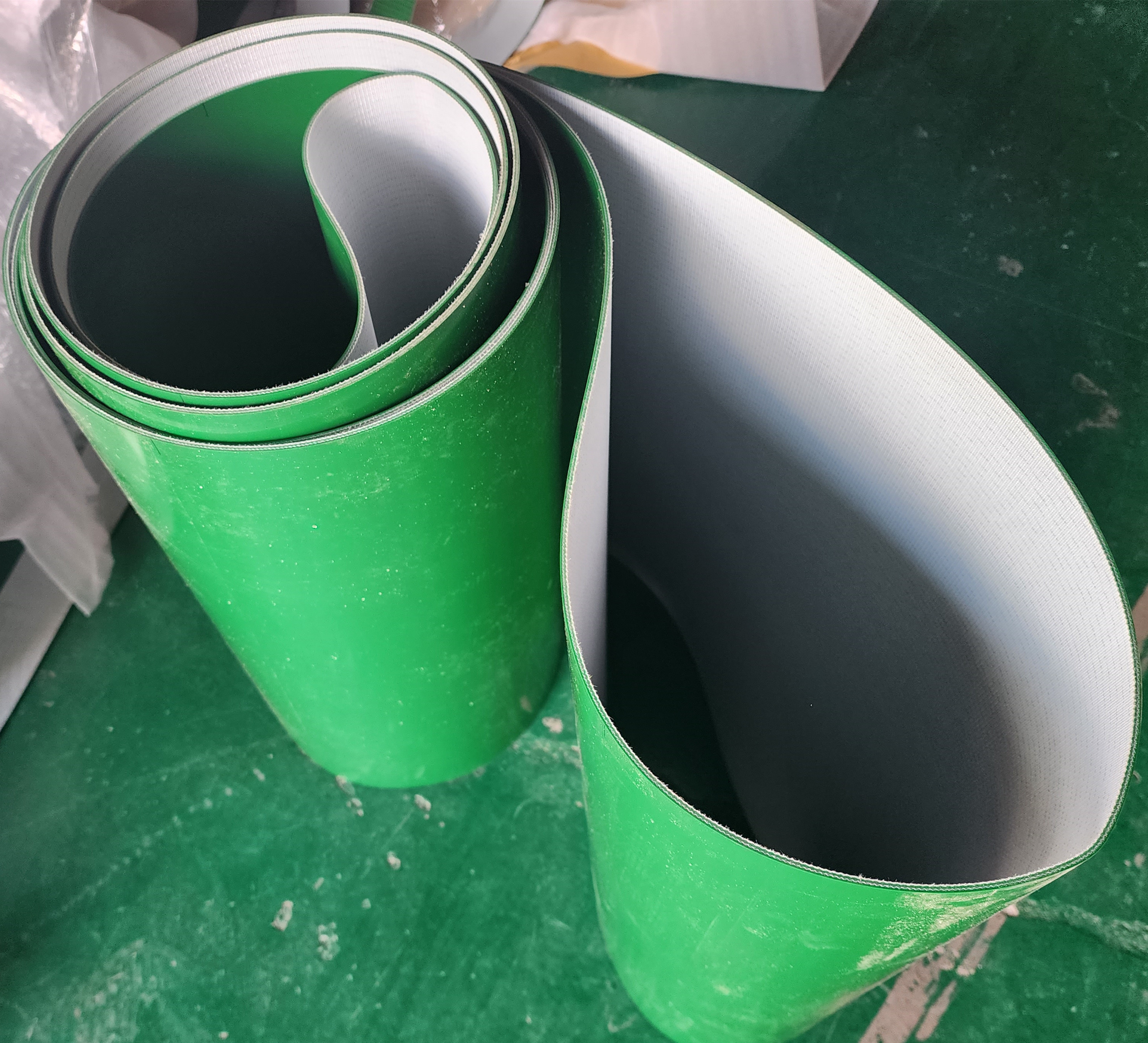 | Resaltar | banda transportadora de la PU del pvc de 3 capas,banda transportadora de la PU del pvc del modelo plano,3 manejan la banda transportadora verde del pvc |