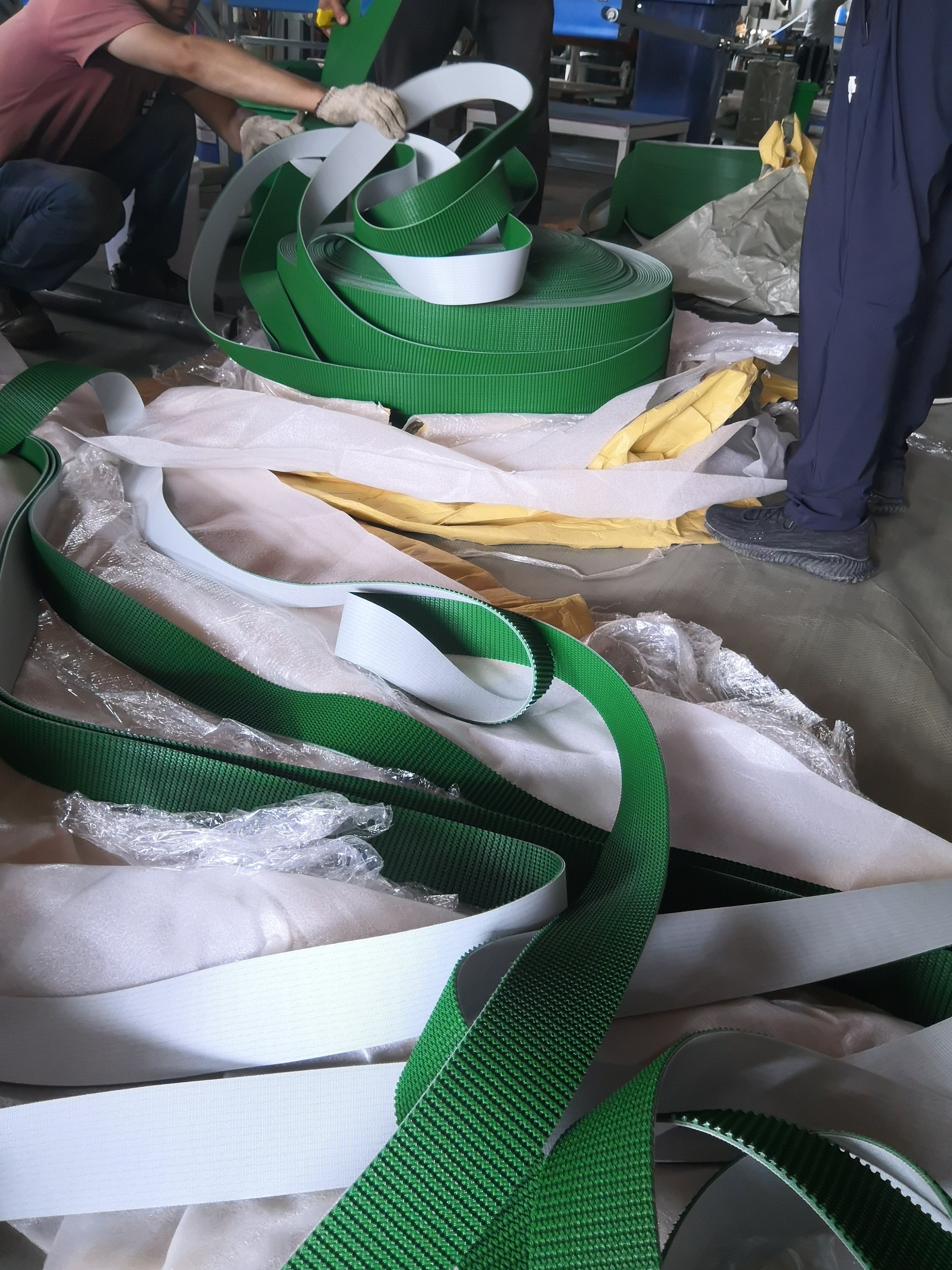 La cinta transportadora de PVC está cuidadosamente empaquetada en rollos y cartones, con palets disponibles para el envío.Cada cinturón se envuelve en material de protección y se coloca en un embalaje resistente para evitar daños durante el transporteProporcionamos información de seguimiento para todos los envíos.